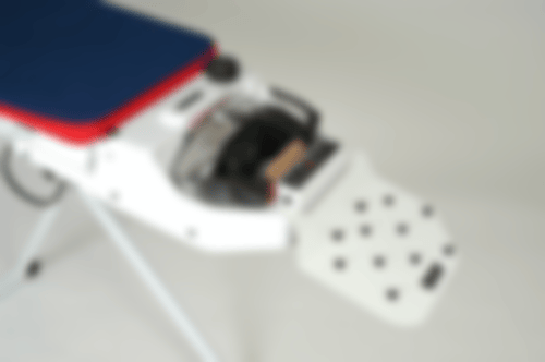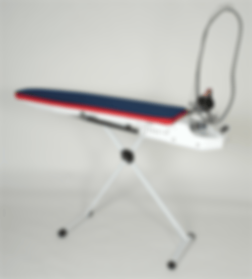 Nach dem Bügeln kann das Profi-Bügeleisen einfach in der praktischen Garage geparkt werden. Der Tisch hat stabile Rollen und kann bequem transportiert werden. Das Tragen des Tisches gehört der Vergangenheit an.